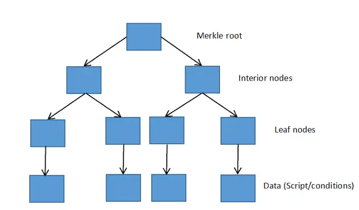 在 MAST 中,BTC 与一棵默克尔树绑定。这棵默克尔树指定了可以解锁未花费 BTC 的所有复杂条件。每个叶节点都代表着一个条件。为了解锁 BTC,你必须生成一个满足默克尔树上某个分支所代表的条件的脚本。仅使用默克尔根即可验证这个条件是否属于原始条件集合(即验证某个叶节点是否在这棵默克尔树上)。一旦比特币区块链网络发现某个脚本(及其所代表的条件)属于这个默克尔根,网络就会知道这个脚本是这些比特币的锁定条件并开始验证解锁脚本。因此,我们无需生成完整的脚本并将其包含到交易内,即可花费以 MAST 锁定的 BTC。这有助于减少 BTC 交易的体积。